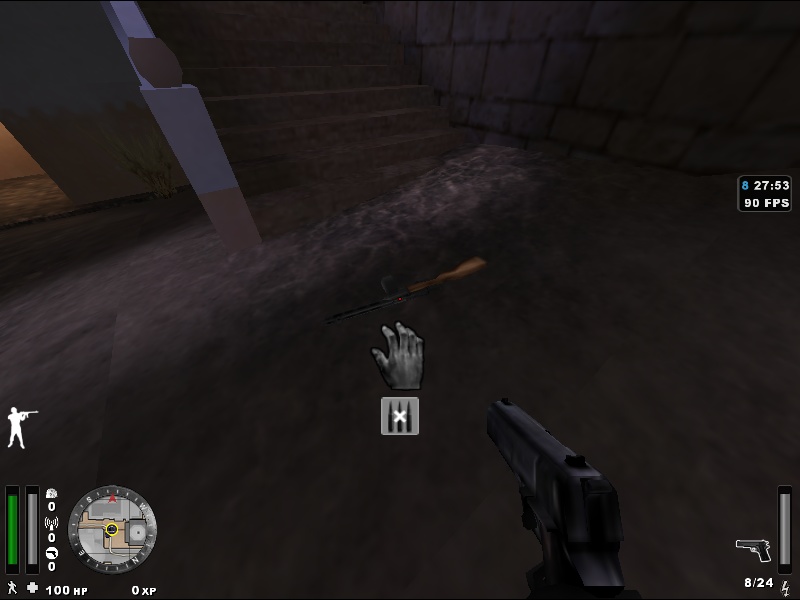 When looking at the gun lying on the ground which does not have ammo inside the grey icon is shown under the hand icon.